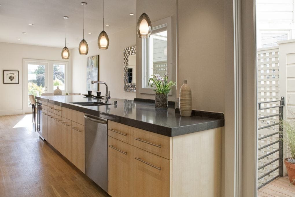 A fully remodeled vintage home equipped with modern features and a beautiful white oak floor to match. The wood flooring made the home appear more spacious and warm, and enhanced the view of the marina.