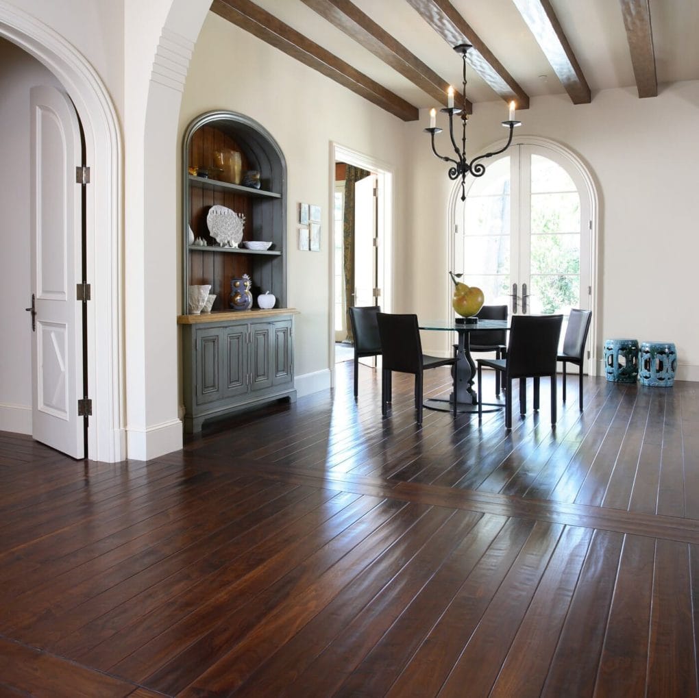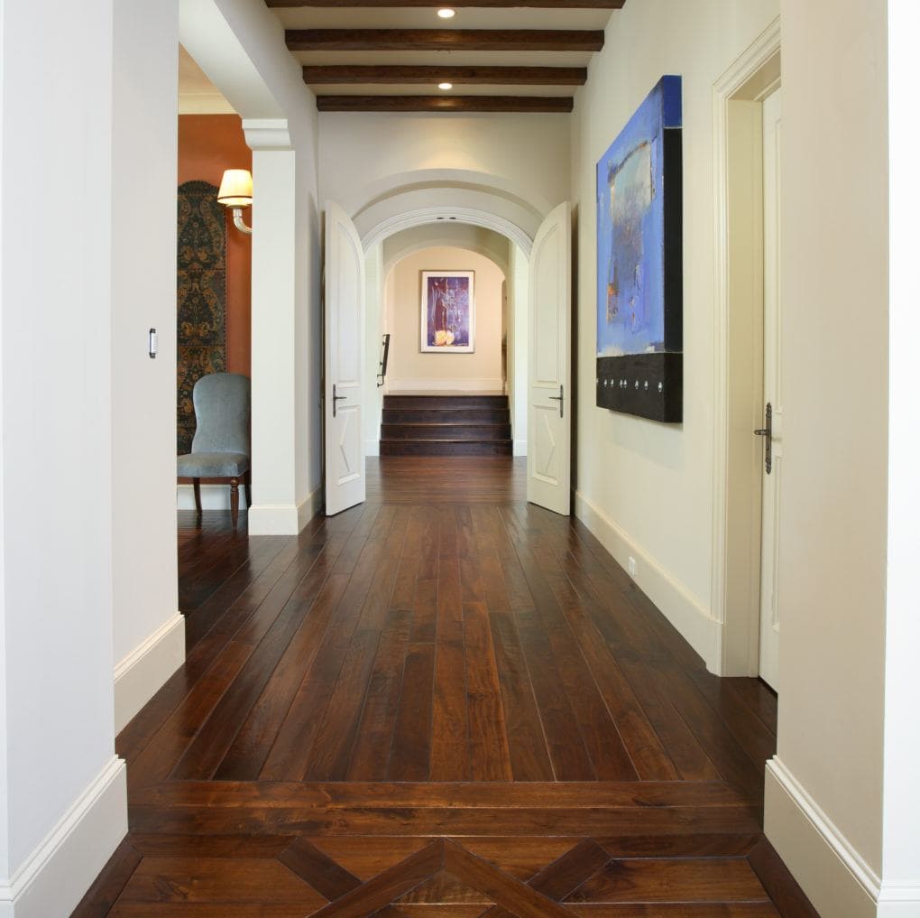 Material: Light American walnut in a wide plank with custom hand-scraping.
