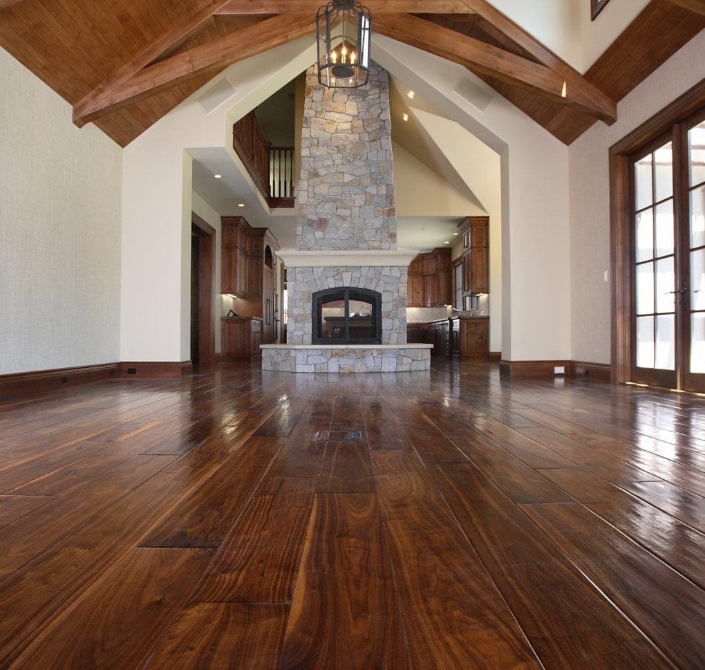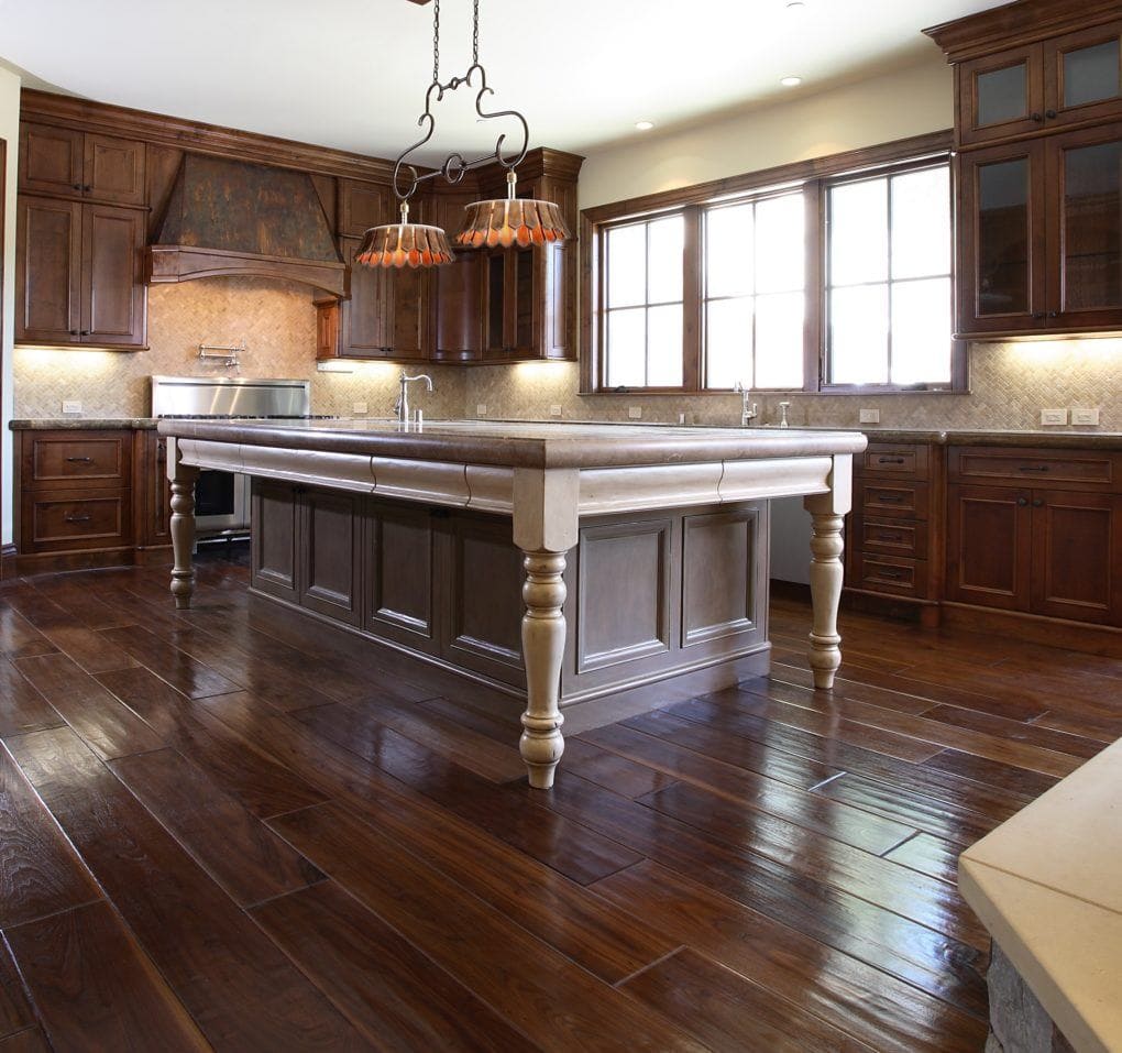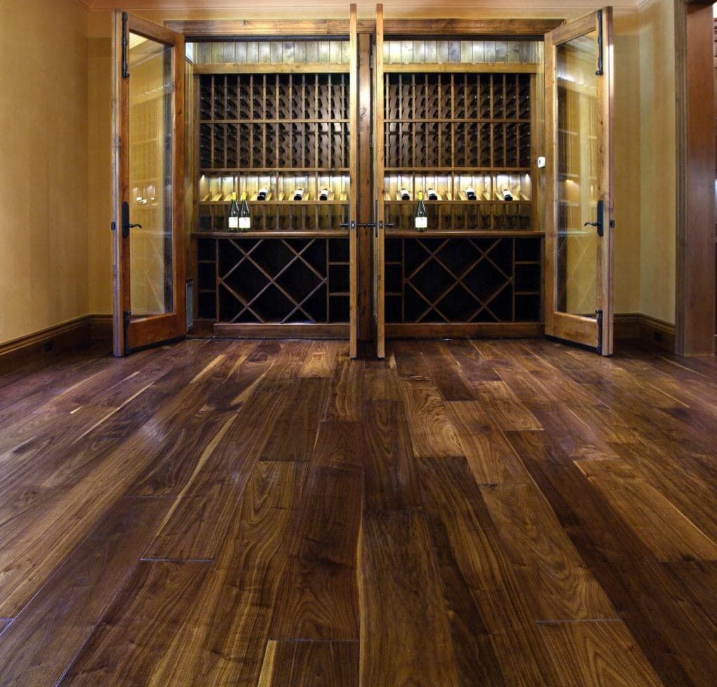 Material: Rustic black walnut in a wide plank with custom hand-scraping.
