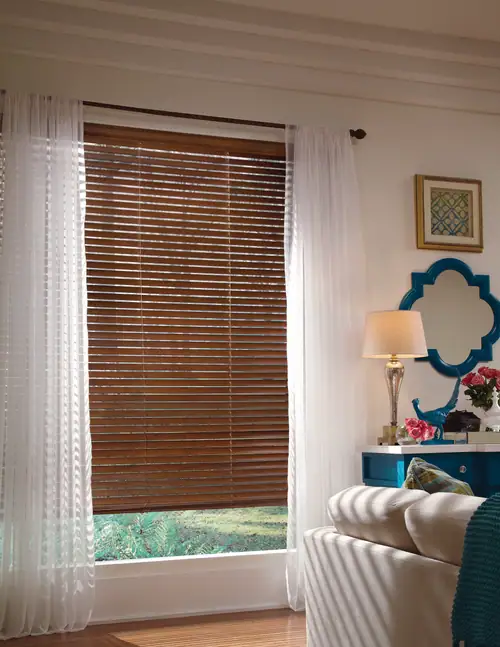 We offer Hunter Douglas Greenguard rated window coverings, which are indoor air quality certified, in a variety of natural looking woven materials, such as light-filtering reeds, grasses and woods. All are available in many captivating designs. We also offer Roman Shades and a variety of valance options.